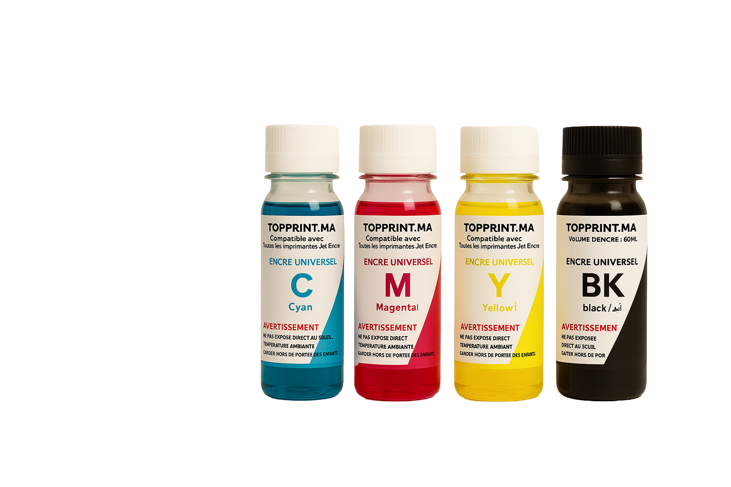 Pack 4 Bouteilles 60ml Encre Universel + 4 seringues et gants