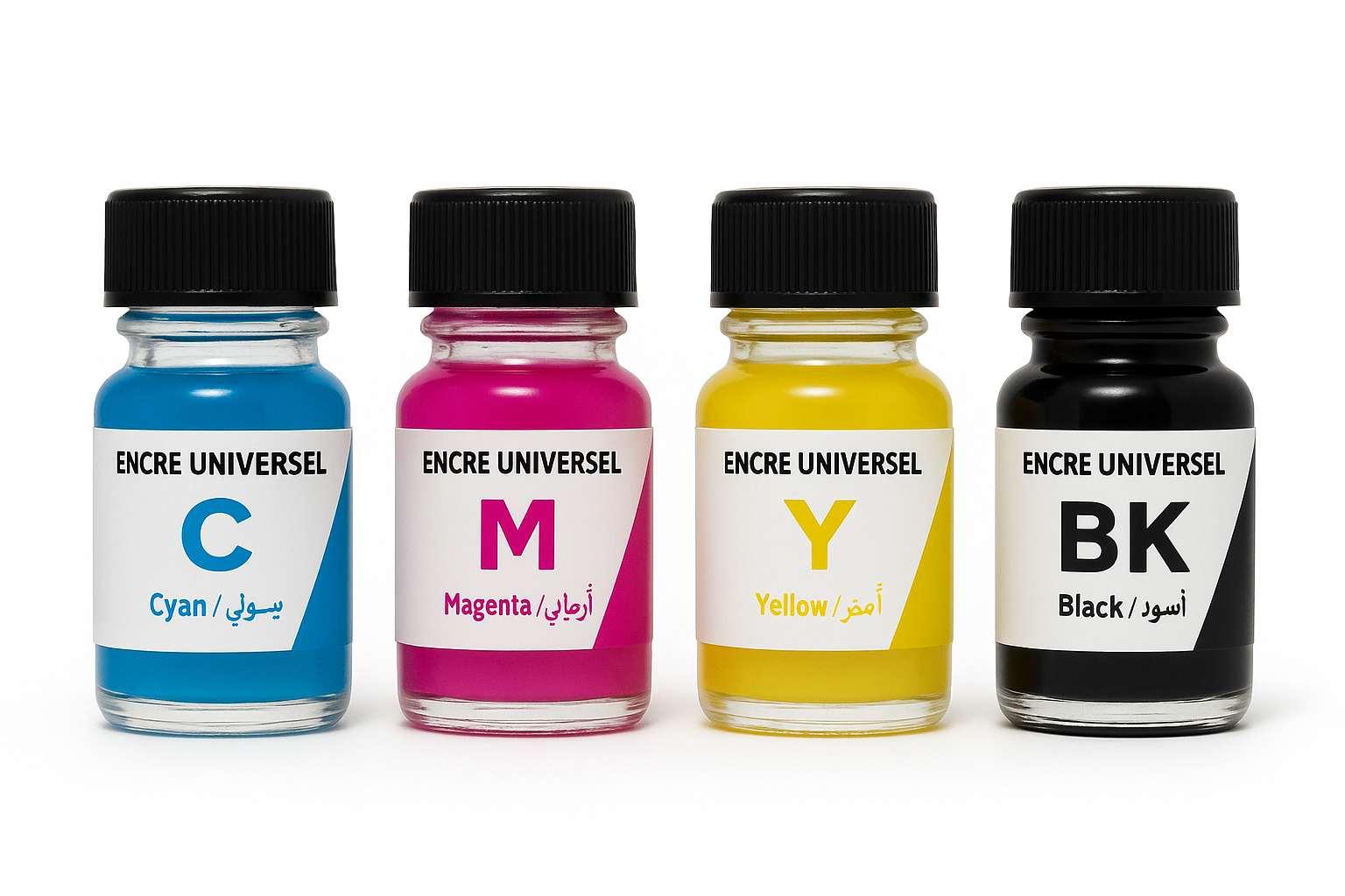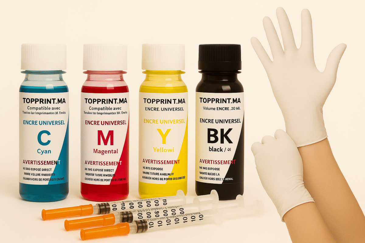Pack 4 Bouteilles 30ml Encre Universel + 4 seringues et gants
