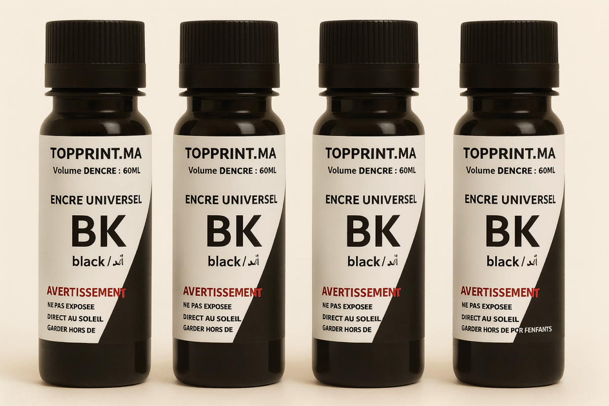 Pack 4 Bouteilles 60ml Encre Noir Universel + 2 seringues et gants