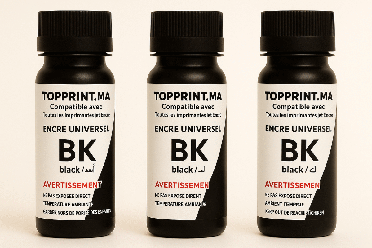 Pack 3 Bouteilles 60ml Encre Noir Universel + 1 seringue et gants